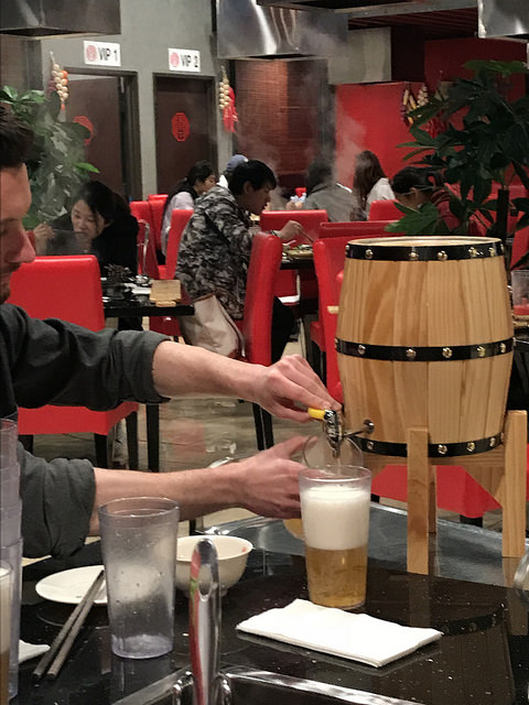 After spotting the mini beer barrels in the back, we discovered the Sapporo is only $5.98 per liter. The barrel fits three liters so that’s what we got to start. With 8 people, that’s roughly a glass each. I loved that the keg was wheeled over to our table and we self-served ourselves.