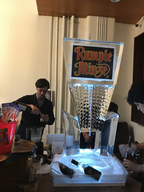 After happy hour, we went back to to the Spirit Guild which has been transformed into party central. There was a Rumple Minze ice luge which I won when I spun the wheel. Other prizes included swag, drinks or even a squats challenge with the instructor from the first class which was all about binding for better health. Athletes wrap their limbs in preparation of games so why shouldn’t bartenders wrap for those long shifts?