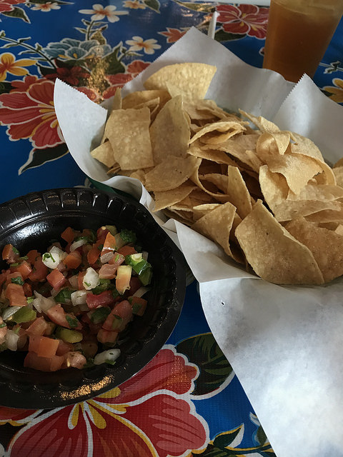 The DTLA one is huge with a patio in the front. During lunch, you grab a menu and walk all the way to the back, past the bar to order. They’ll give you a number and it’s more or less self serve between the chips, salsa bar, drinks. However, they will bring you the food and utensils.
