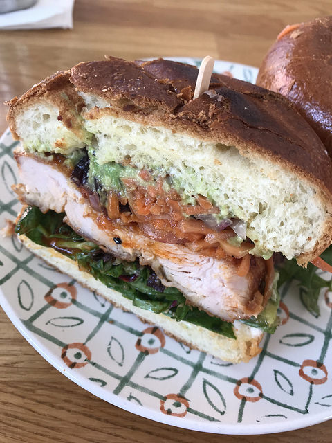 My lunch partner got the not-so-spicy fried chicken sandwich. I had a little bite. While not dry, I do recommend the avocado mash for maximum flavor.