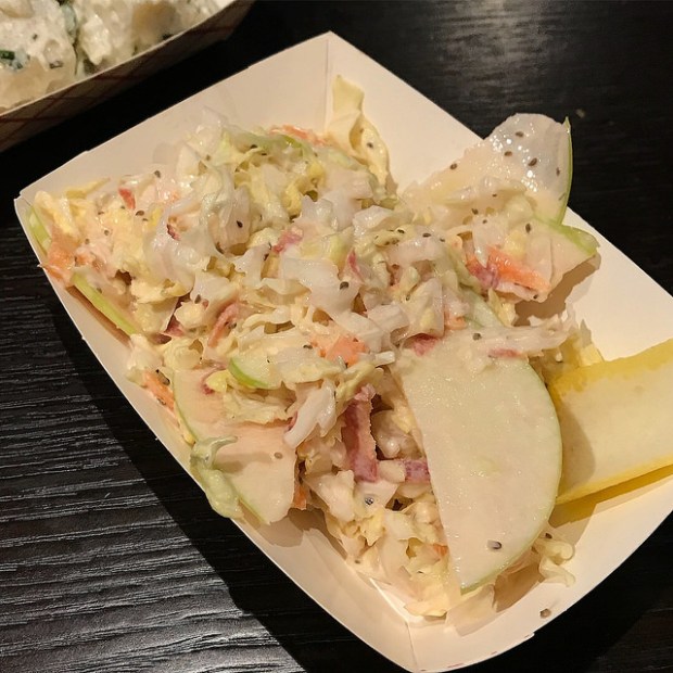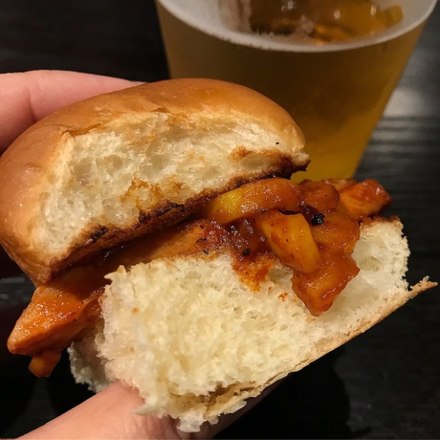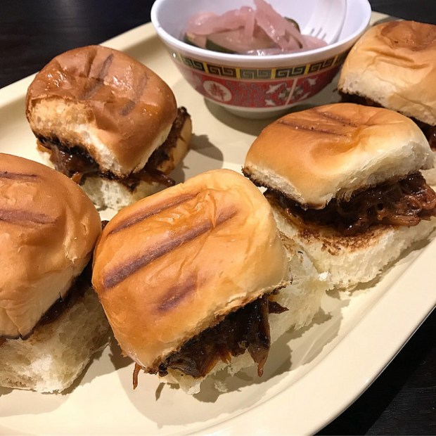 Are you going to get the pulled pork sliders or the chicken? I’d suggest both if you see the chicken on the menu. Sadly I didn’t get to try it so you tell me how it is, okay? I liked the pulled pork. I would probably add some of that napa cabbage slaw for more of a crunch. Or if you want to go just meat and bread, that’s fine too!