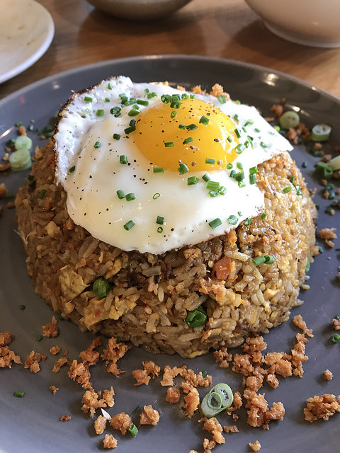For lunch (it’s only brunch if there’s booze and we were not imbibing that morning… er, afternoon), we ordered the crab fried rice, noodles with oxtail and pacel, an Indonesian salad with tempeh.