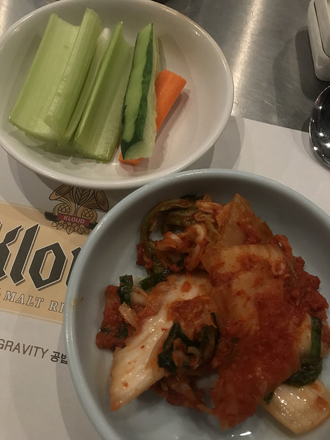 Here at JBD, you get the addition of cucumber with your raw veggies of carrots and celery. I also got a couple rounds of kimchi because I love it (DBD has an edge on JBD for their kimchi though).