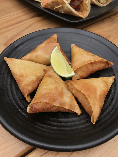 I loved the curry chicken samosas. These were much lighter than other samosas I’ve had before. The wrapper reminded me of Chinese egg rolls from dim sum. And if you want to make it a meal, get it as a salad (shown above).