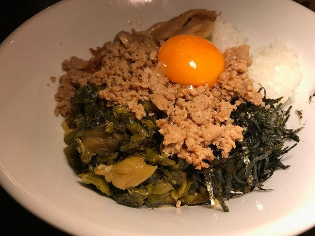 On another visit I tried the Hachioji dry ramen. Earlier I mentioned there is no pork ramen. That is not quite tree. The dry ramen features pork. You’re encouraged to mix the raw egg into the dish before eating. I enjoyed the generous amount of preserved veggies, shredded seaweed and grated daikonn. It didn’t feel heavy at all and this would be a good dish on a hot day.
