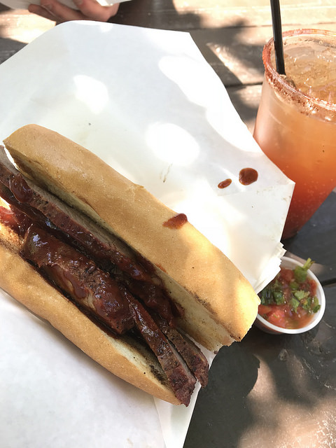 For your $10 buckeroos, you get a good roll with some nice tri-tip. There are three sauces you can slather on. We found the BBQ sauce went well with the horseradish cream. But I like the pico de gallo addition with a bit of veg. It really didn’t need the sauces for moistness however. The beef was so tender and flavorful. I almost wished I had gotten my own sandwich but I shared with a friend. Next time.