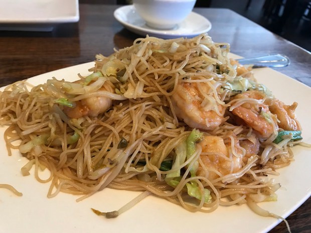 And then we also got the shrimp mi fun. The rice noodles were very good though not especially pretty. Hey, it feels more authentic that way!