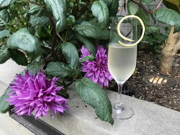 I looked for sunflowers in the garden to pose this drink next to but we’ll just go with the dahlias! The Sunflower features a good mix of Botanist gin (one of my faves) with St. Germain and absinthe. It is a great aperitif.