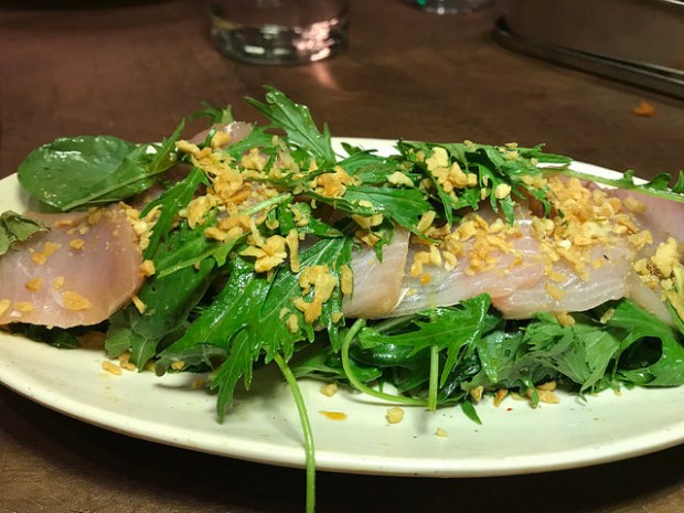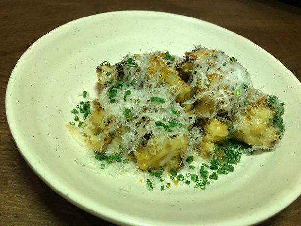 We started out with the yellowtail sashimi from the salad section. The hamachi was covered with crispy garlic which was a slightly different take on the usual yellowtail dishes I’ve had. Be sure to eat the mizuna greens with the yuzu truffle dressing.