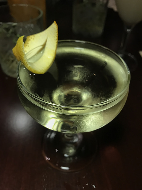 A friend started off with the Harry Johnson, a whiskey sour variation. In this case, it has Japanese whisky and the vegan substitute for egg whites; aquafaba which is garbanzo bean water. This was surprisingly not as light as I anticipated with the lighter Japanese whisky. I suspect the absinthe had a lot to do with giving this drink some backbone.