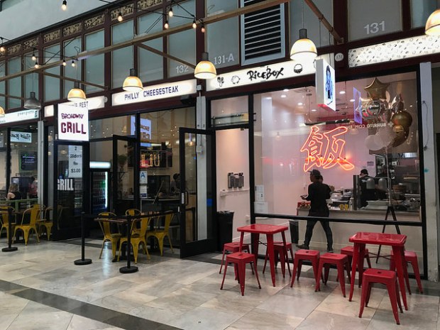 Ricebox, not to be confused with Ricebar, is now open at the Spring Arcade Building. It’s also the home of Uli Gelato, Guisados, Claytons, Don Francisco’s, Kai Japanese and more.