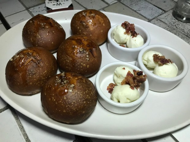 We snacked on pretzel buns with maple bacon butter. The bacon came from our Westward mash-fed pig.