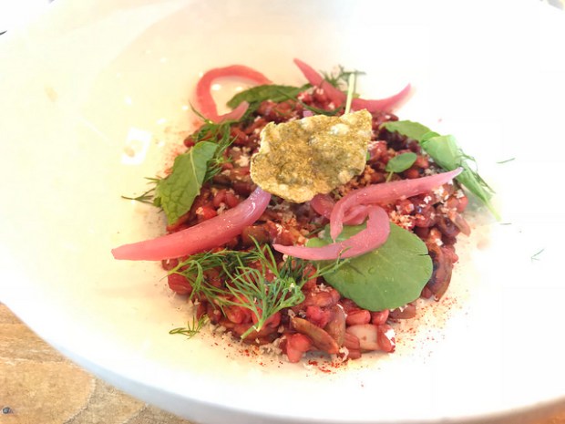 One of Baroo’s best known dishes is the Noorook. It’s a grain bowl of lots of delicious things including Job’s tears, sunflower seeds, beet cream and so much more. The fingerlime gives it a pop as well.