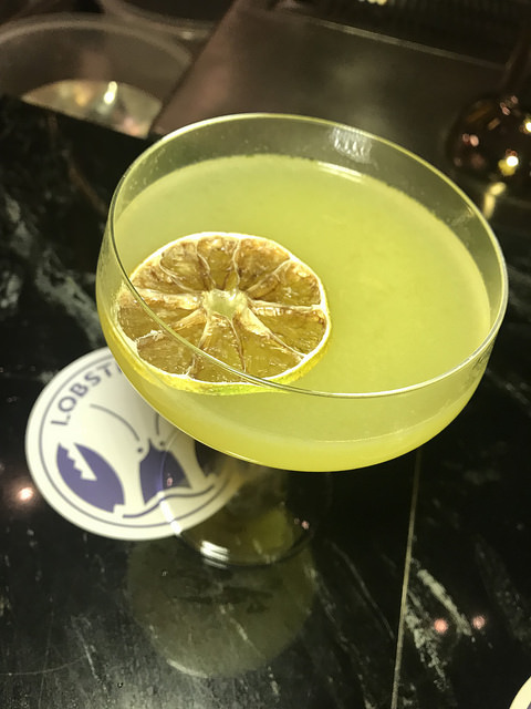 By sheer luck, I found the Lobster Bar as it was next door to the Conrad where I was checking out the Asia Contemporary Art Fair. It was a Friday night around 8 p.m. so it was very busy at the bar. They allowed me to stand while waiting for a spot to open up. I discovered Hong Kong bars all provided snacks (while the American imports did not).