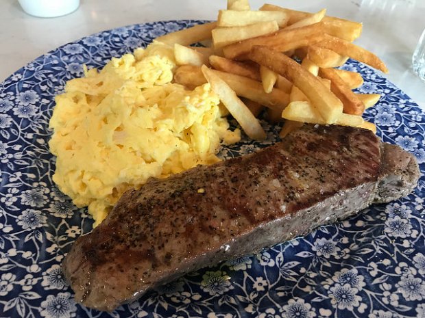 We were preparing to go to a show at the nearby Walt Disney Concert Hall so I didn’t have time for a Bloody Mary (Red Snapper with gin) but is it really a brunch then? Well, it was the weekend and damnit, I’m getting steak and eggs so yes, it’s brunch!