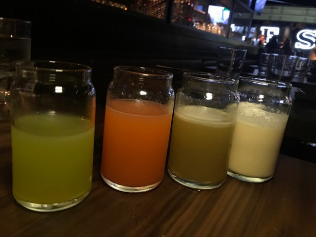 We tried all four shooters on offer. My favorite was the Young Grasshopper as it’s minty! But I also liked the Julius Peppers. Spicy! My friend liked the Miami Vice with the coconut rum and strawberry.