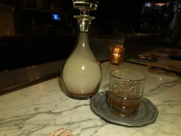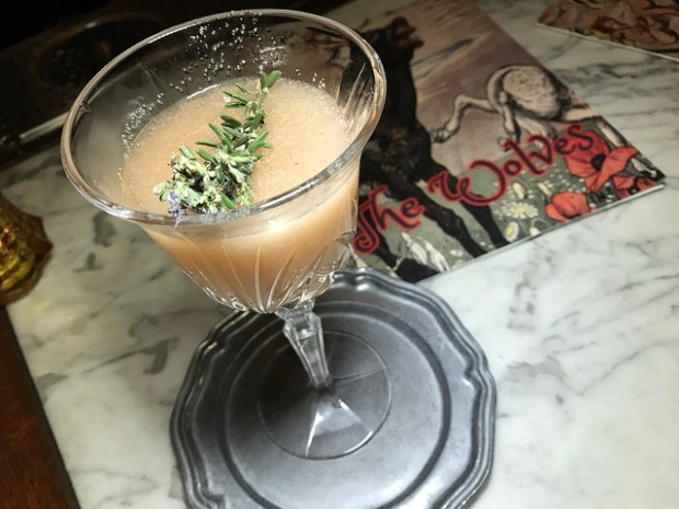 The first time I was at The Wolves, I noticed everyone was getting a smoked cocktail. It turns out it was the bourbon cranberry with smoke. Eagle Rare bourbon is combined with the various housemade items including two liqueurs, vermouth and bitters with smoke from a port barrel. They pour the smoke into a drink decanter. And the idea is the smoke will slowly continue to infuse with the drink while you sip on your first pour. It was the fanciest side car I’ve seen.