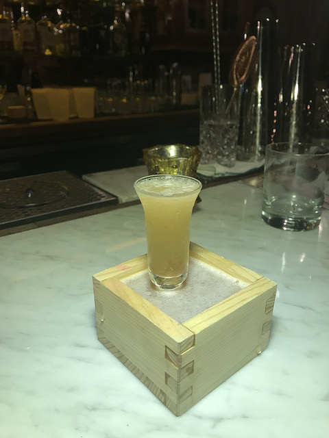 My friend tried the fig, goji and sake which you enjoy by sipping from the glass and then from the sake cup.. I didn’t get much of the hinoki wood fragrance but I didn’t spend much time with that drink. It’s under the delicate and subtle section.