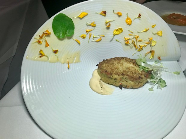 Chef Tony sent out the “crab cake” which is vegan as it’s just made with hearts of palm. We really enjoyed this dish and my dining companion said it was his favorite thing he ate. The palm had a perfect texture.
