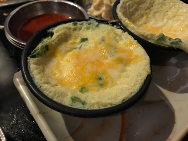 I got a couple of steamed eggs for the table. They weren’t in the usual Korean dishes but smaller bowls with sharply sloped sides. They were topped with cheese which some of the lactose intolerant of our group found un-amusing but I thought it was fun.