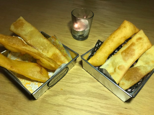 If you’ve ever had Cantonese porridge (jook), it’s often paired with Chinese cruellers aka, Chinese doughnuts. In Cantonese it’s formally known as yao tiao. However, the slang is “yao jha gwei” or literally oil fried ghost.