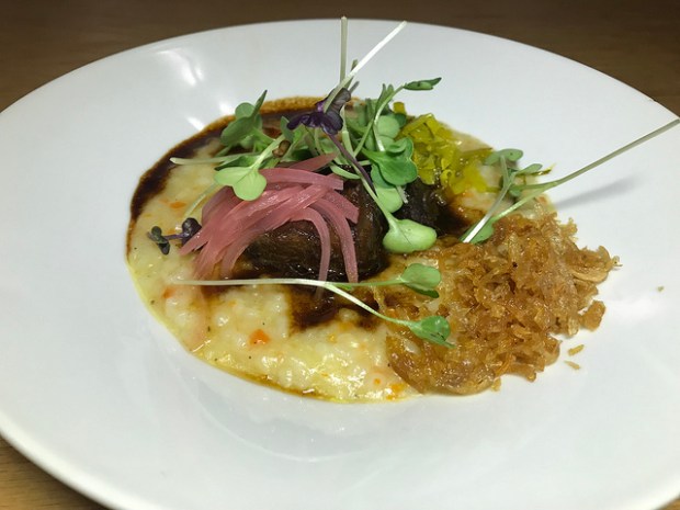 One of the porridges we had was the shortribs which had been braised in five spice and jujubes. I’m a big protein fan so this was one of my favorites. I loved the turmeric pickled mustard on the side.