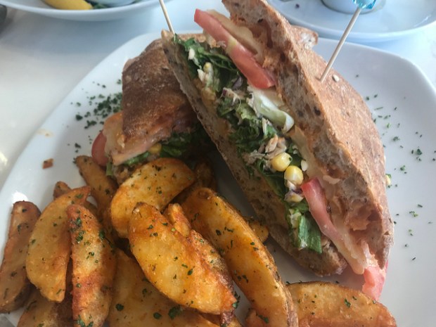 I got the tuna melt which a really cool take on a traditional melt. This one is so healthy with lettuce, tomatoes and corn.