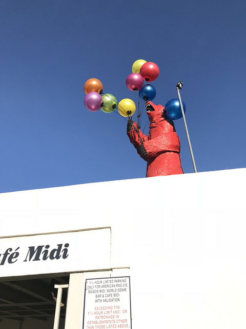 After the museum, we headed to Cafe Midi. I have been meaning for years to check it out. Namely because of the fun bear on top of the building. Although I always wanted to check out the shops as well including American Rag.