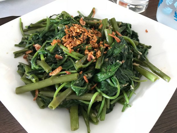 The menu had morning glory (aka Chinese tong choy or kang kong). The supplemental menu had other veggies like bean sprouts. But let’s be honest, bean sprouts are filler. So we went with morning glory. Yum, these were done well with fried garlic.