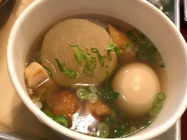 I recently discovered I love fish cake and balls. I don’t know if I like the texture (yes, I do) or the flavor but I love oden soup which features a variety of such. Plus there’s an whole egg! It’s a great value at $6 too.