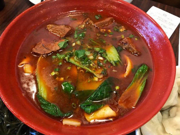 I can’t go to a noodles and dumplings spot and not get noodles. Usually the first one I try is beef noodle soup. It’s not spicy and the broth was very clean. The beef was also very tender. I did recently get this bowl again and tried it with the thin noodles over the handmade ones. I liked both but if you’re afraid of the noodles becoming too soft, I advise getting the handmade ones.