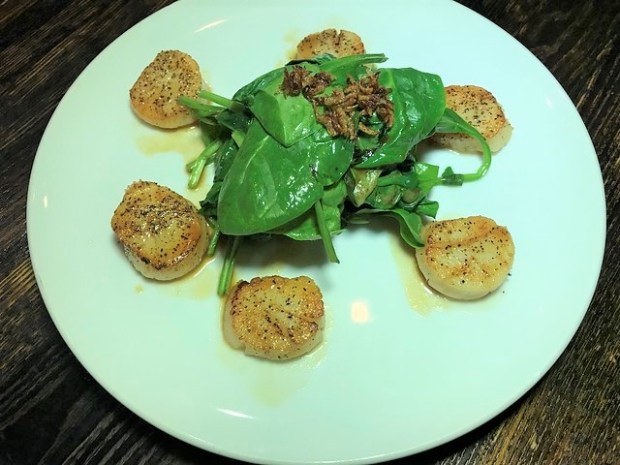 I liked the scallops with a touch of citrus. It helped cut down the fattiness of the cooking technique (yes, they were oily). We loved the spinach.