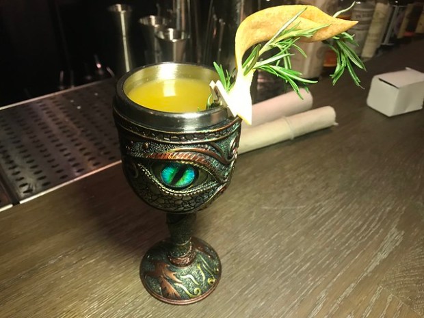 Over at Ever Bar at the Klimpton Everly Hotel in Hollywood, they’re doing an 90s themed Negroni month called, “NOW! That’s What I Call A Negroni Menu”. Negroni variations are available from June 24 to July 15 (yes, past Negroni Week!). The drink shown above is not from the Negroni menu but from their Game of Thrones menu a couple months back. But how great would it be if you got a Negroni servied in a dragon goblet– wasn’t there a 90s themed sci-fi/ fantasy dragon show? Okay, maybe not. I can’t wait to see Ever Bar’s drinks since they always do so well with themes. Their holiday one was fun!