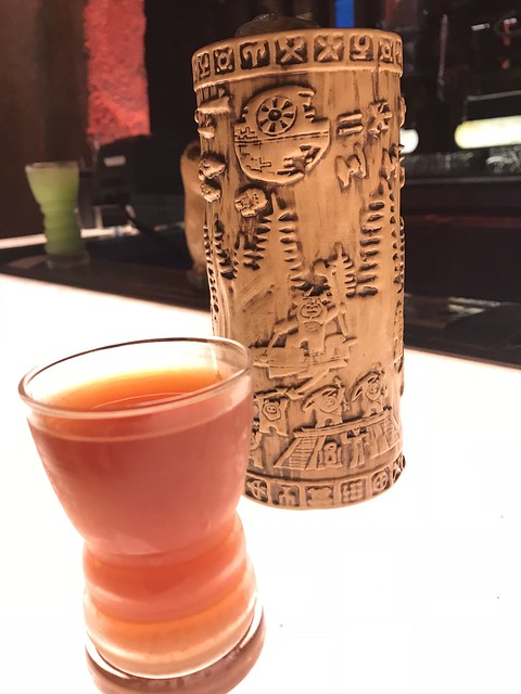 I got the Cliff Dweller because I really wanted a porg tiki mug. It’s non-alcoholic and cost… $32. I have a small collection of tiki mugs and this is definitely one of the jewels of my collection. I actually enjoyed the variety of juices in the drink but it is one pricey souvenir (though in the grand scheme of things, a small price to pay for all the squee it gave me).