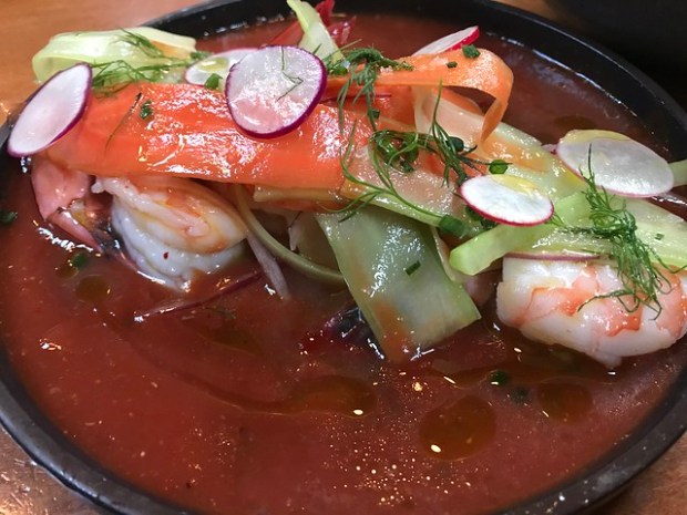 And if that means taste testing something like Baja prawns, well, I’m down. The big plump prawns are bathed in a Clamato sauce. And yet, it tasted so fresh.