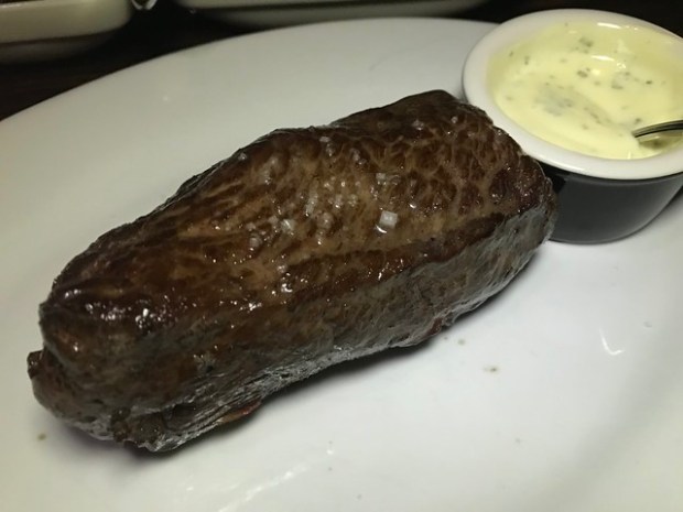I usually get rib eye but didn’t feel like a giant steak that evening so I tried the sirloin. I always get steak done medium rare and it was indeed quite perfect. As mentioned, we had a lot of food. Especially since I also got mushrooms and creamed spinach. I turned it all into a pretty fun rice bowl for lunch the next day.