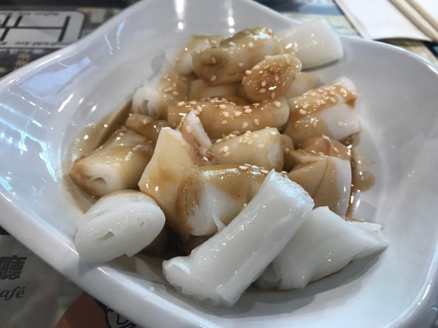 Another typical street food are the rice rolls. These are simply dressed with a nutty sesame sauce. These are meant to be eaten on the run with with toothpicks.