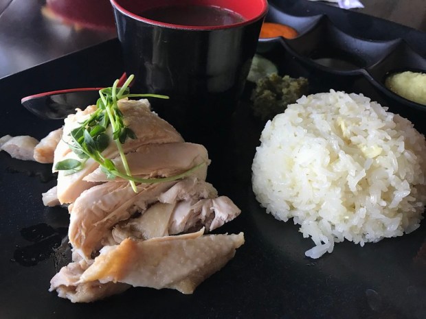I was more interested in the Hainan chicken. I didn’t grow up with this as a comfort food (though I did eat a lot of Chinese take-out of steamed chicken with green onion sauce) but I have embraced it the last 15 or so years. My favorite version is still the Thai version at Nong’s Khao Man Gai.