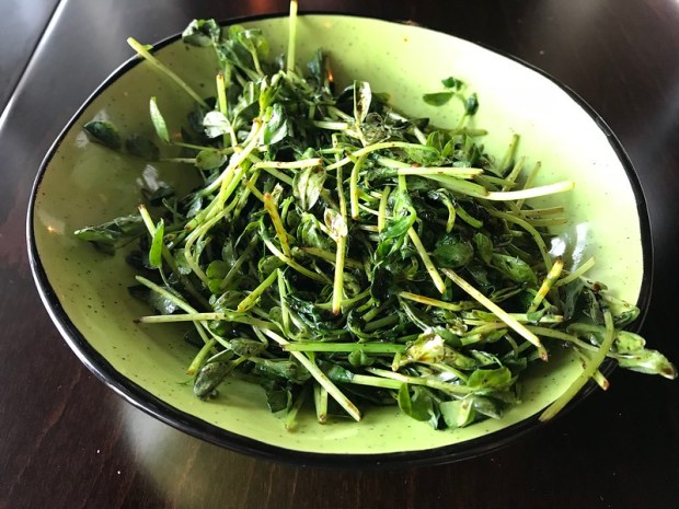 Did we need greens? No, but I ordered pea sprouts anyway. I firmly believe a lot of veggies balance out all the indulgence of Vegas.